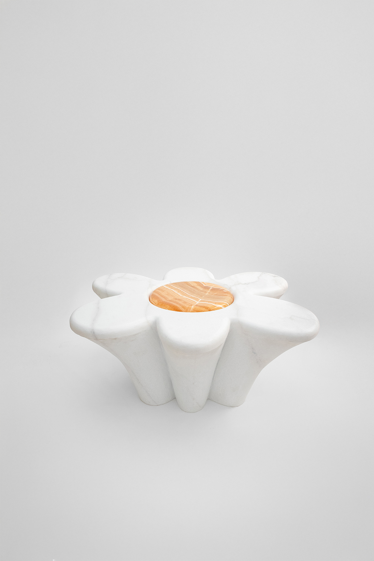Completing this sculptural garden, the Hydraea chair takes shape as a fluid drop of blue calcite, an embodiment of water, life’s vital element, now crystallized in stone. Together, these pieces form a botanical relic for the future, a vision of flora sculpted beyond time. Lithic Bloom is an invitation to rethink our connection to nature, a journey through the world’s plant diversity, and an archive of what once was a glimpse of what may remain.